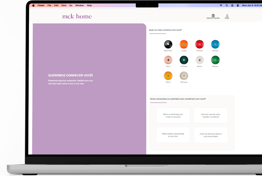 Criar sua lista de presentes é simples, prático e do seu jeito. Você pode escolher os produtos que mais combinam com o seu estilo e montar uma seleção personalizada para compartilhar com seus convidados, ou, se preferir, optar por listas pré-montadas organizadas por faixa de valor ideais para quem quer agilidade e praticidade na criação.