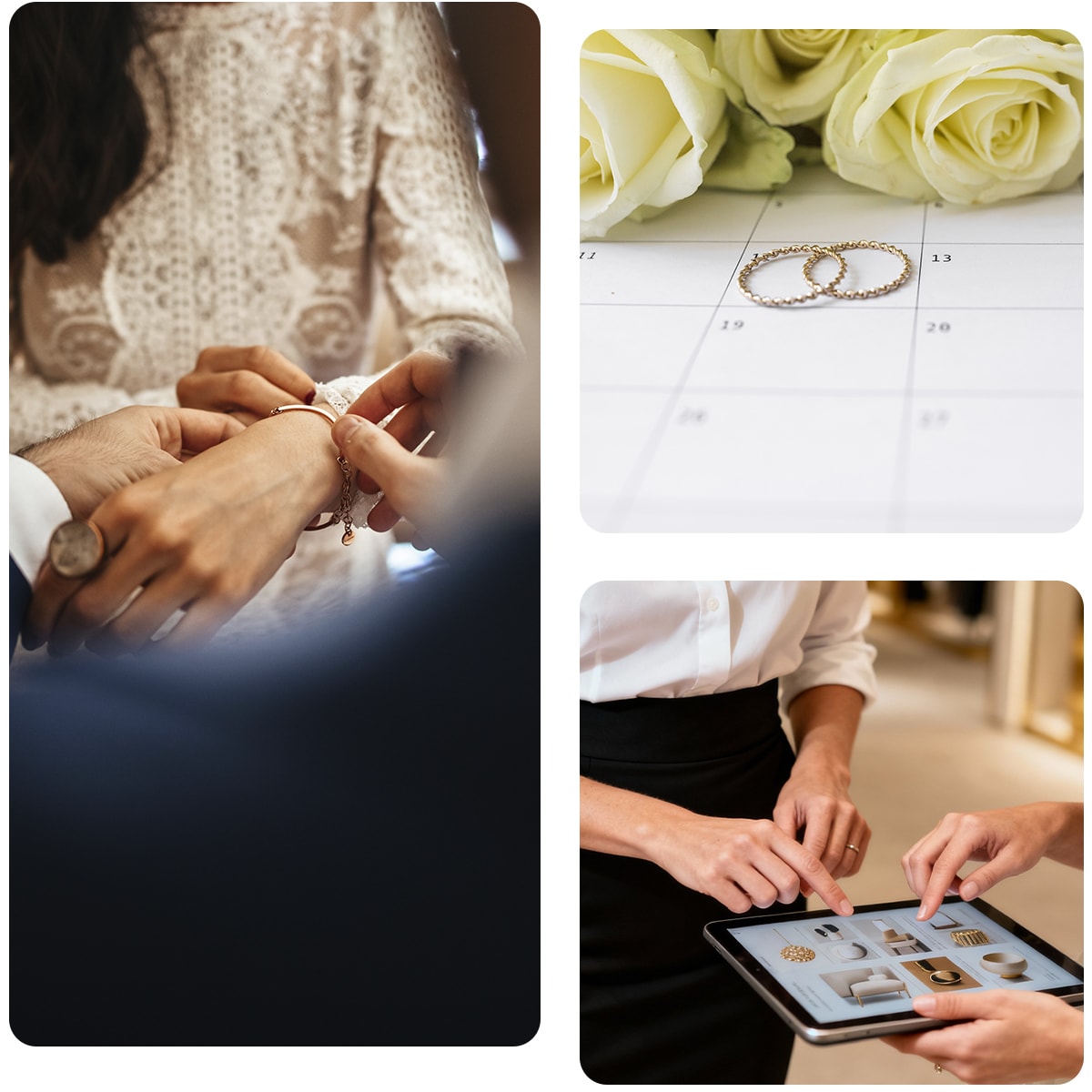 Consultores que acompanham noivos em decisões de compra e organização do casamento.